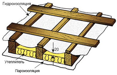 Чтобы избежать скапливания влаги и порчи утеплителя, нужно таким образом установить между стропилами маты и плиты теплоизоляции, чтобы между утеплителем и пленками Д 96 Сильвер, Д110 Стандарт и Антикон 130 УФ, создавался зазор в 20 мм. Если используется пленка Тайвек, необходимость в зазоре отпадает, так как супердиффузные мембраны обладают достаточно высокой паропроницаемостью.