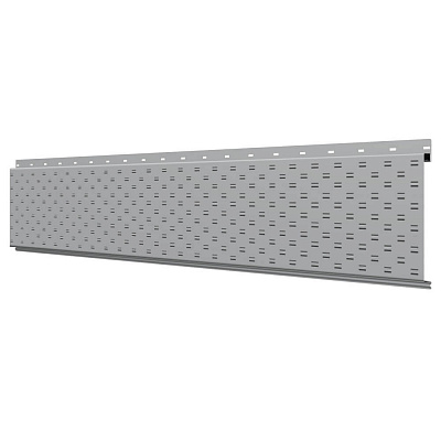 Линеарная потолочно-стеновая панель с ПЕРФОРАЦИЕЙ для вентиляции цвет RAL7004 Серый применяется в качестве софитов для подшивы крыши, наружной и внутренней отделки потолков, стен, фронтонов фасада дома в Каменске-Уральском.