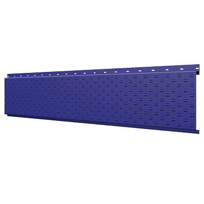 Линеарная потолочно-стеновая панель с ПЕРФОРАЦИЕЙ для вентиляции цвет RAL5002 Синий Ультрамарин применяется в качестве софитов для подшивы крыши, наружной и внутренней отделки потолков, стен, фронтонов фасада дома в Каменске-Уральском.