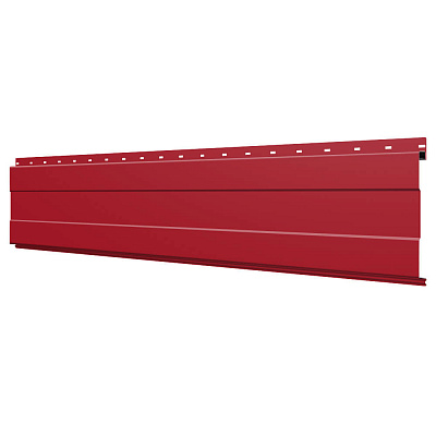 Линеарная потолочно-стеновая панель с ПОЛОСОЙ усиленная цвет RAL3003 Рубин применяется в качестве софитов для подшивы крыши, наружной и внутренней отделки потолков, стен, фронтонов фасада дома в Каменске-Уральском.