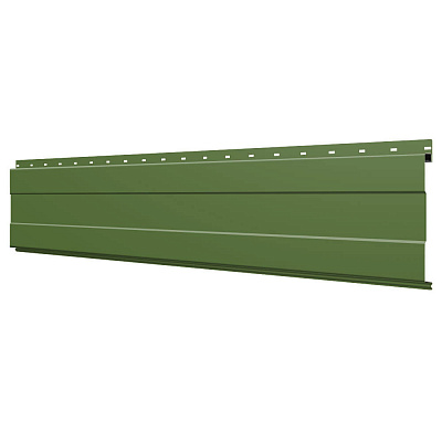 Линеарная потолочно-стеновая панель с ПОЛОСОЙ усиленная цвет RAL6002 Зеленый Лист применяется в качестве софитов для подшивы крыши, наружной и внутренней отделки потолков, стен, фронтонов фасада дома в Каменске-Уральском.