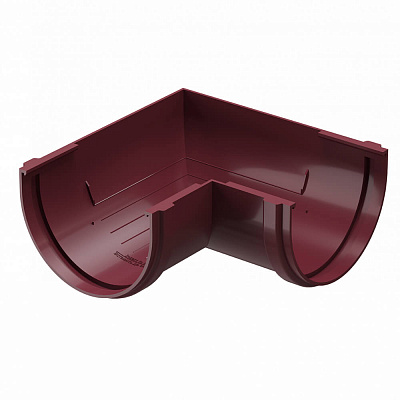 Угловой элемент желоба универсальный ДЕКЕ STANDARD d120мм 90 градусов цвет RAL 3005 Красный в Каменске-Уральском. Угловые элементы устанавливаются как на внешних, так и на внутренних углах кровли и предназначены для соединения желобов.
