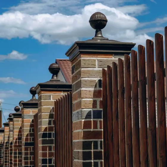 Защита столбов кирпичного забора из штакетника