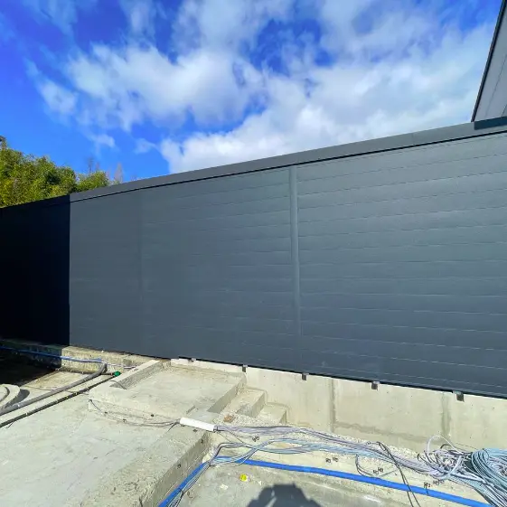 Пространство, где каждая деталь работает на стиль и комфорт. Опорная стена и забор, оформленные линеарными панелями типа «Гладкая» в благородном оттенке RAL 7024 Серый графит с покрытием RoofTop Бархат, превращается в мощный акцент интерьера. Глубокий матовый цвет и мягкая фактура создают атмосферу премиальности, делая обстановку современнее, солиднее и визуально цельнее. Такой выбор — это не просто отделка, а инвестиция в эстетику и долговечность, которая будет радовать взгляд каждый день.